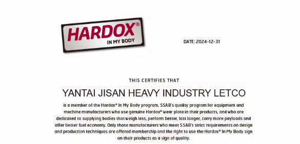 金山重工獲得瑞典Hardox鋼板授權資格企業